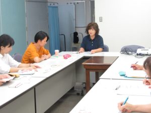 9月19日(水)に開催した講習会では、7名の参加があり、講師をお招きして『母親の気持ちに寄り添った支援』が出来る様に、訪問時に気を付ける事や支援時の注意点、もく浴の補助の仕方などを学ぶことができました。